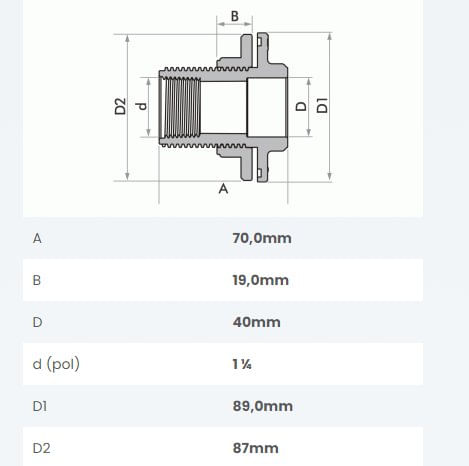 Dimensões (Bitolas): 40mm x 1.1/4"".