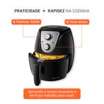 TIMER DE 60 MINUTOS: Facilidade e comodidade de selecionar o tempo necessário de preparo das receitas. A função Timer proporciona a liberdade para você se dedicar a outras tarefas enquanto a Air Fryer trabalha para você.