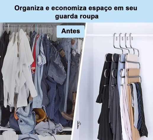 Cabide para calças, saias, bermudas e cachecóis. Até 5 peças.