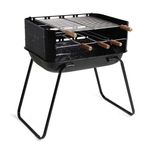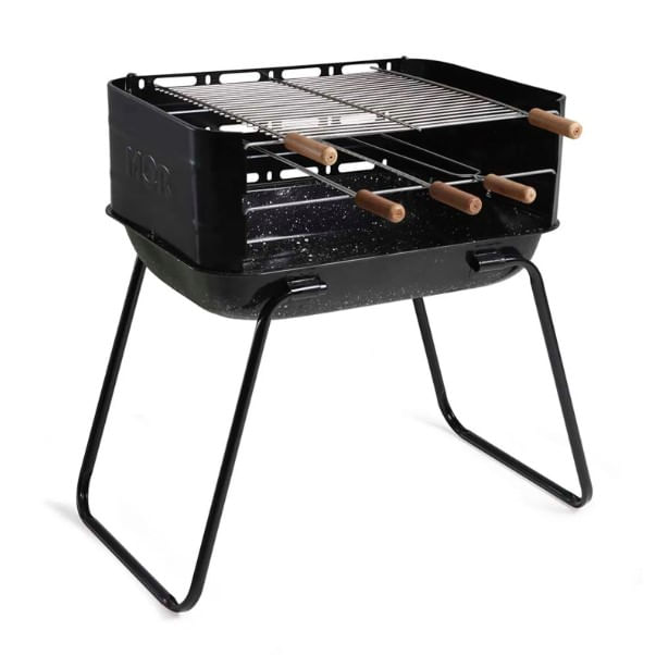 Para os amantes de um bom churrasco feito na brasa, a Churrasqueira Arizona é a escolha ideal! Sua bacia esmaltada absorve melhor o calor, garantindo rapidez e uniformidade no preparo dos assados, além de facilitar a limpeza graças à sua superfície lisa. Com estrutura resistente em aço esmaltado e pés em tubo de aço, acompanha um kit completo de acessórios cromados: dois espetos simples de 58 cm, um espeto duplo de 58 cm e uma grelha com cabo de madeira. Fácil de montar e transportar, é perfeita para momentos de descontração entre amigos e familiares!