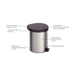 Dispensa o uso de balde interno, permitindo a utilização direta de sacos de lixo de 12 a 20 litros, fixados por um orifício lateral. Com a tampa fechada, o saco não fica aparente, mantendo a estética do ambiente. Conta ainda com alça para transporte e sistema de abertura por pedal, além de tampa que não encosta na parede ao ser aberta.