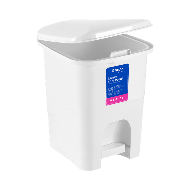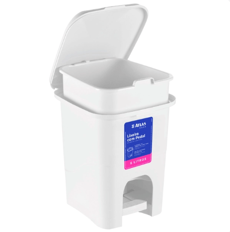 Retangular com pedal. Cesto removível para facilitar retirada do lixo. Resistente, prática e funcional. Fácil de lavar. Capacidade: 6 litros.