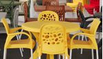 A mesa deluxe amarela é fabricada em polipropileno, versátil, moderna e super resistente, perfeita para compor o ambiente.