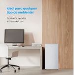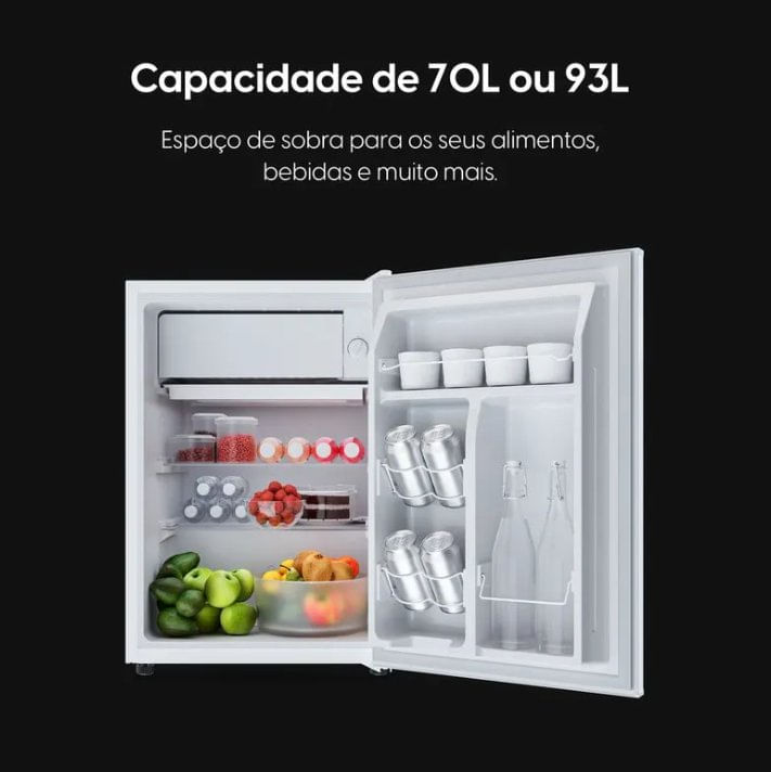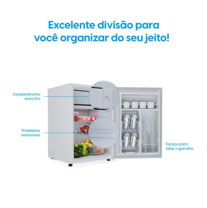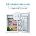 Conta com compartimento extra frio, prateleiras de vidro removíveis e espaço específico para latas, garantindo melhor organização e conservação dos alimentos e bebidas. Seu termostato com 7 níveis de ajuste permite controlar a temperatura de forma precisa, atendendo diferentes necessidades de uso.
